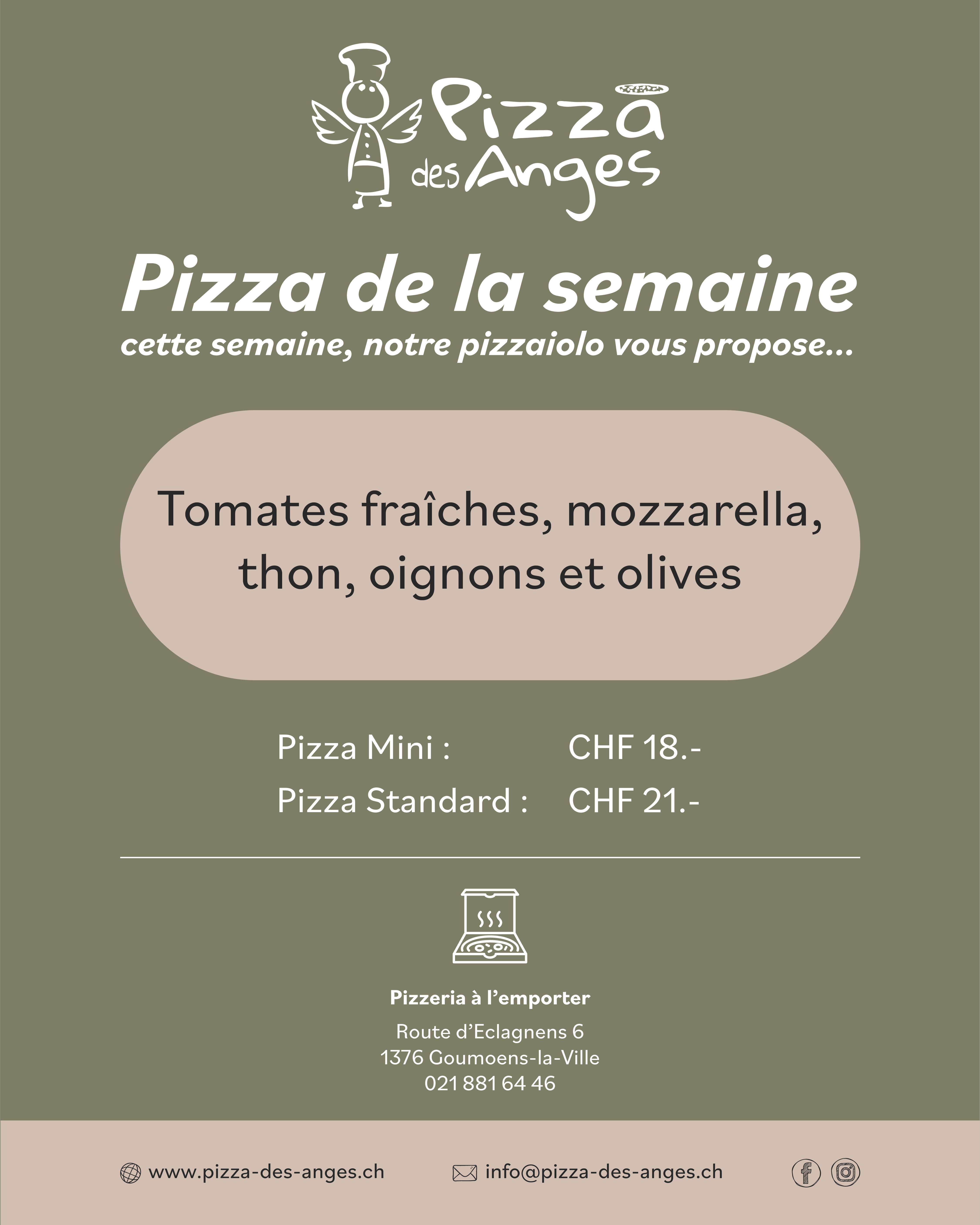 PIZZA DE LA SEMAINE à Goumoens du 17 au 22 fevrier 2026