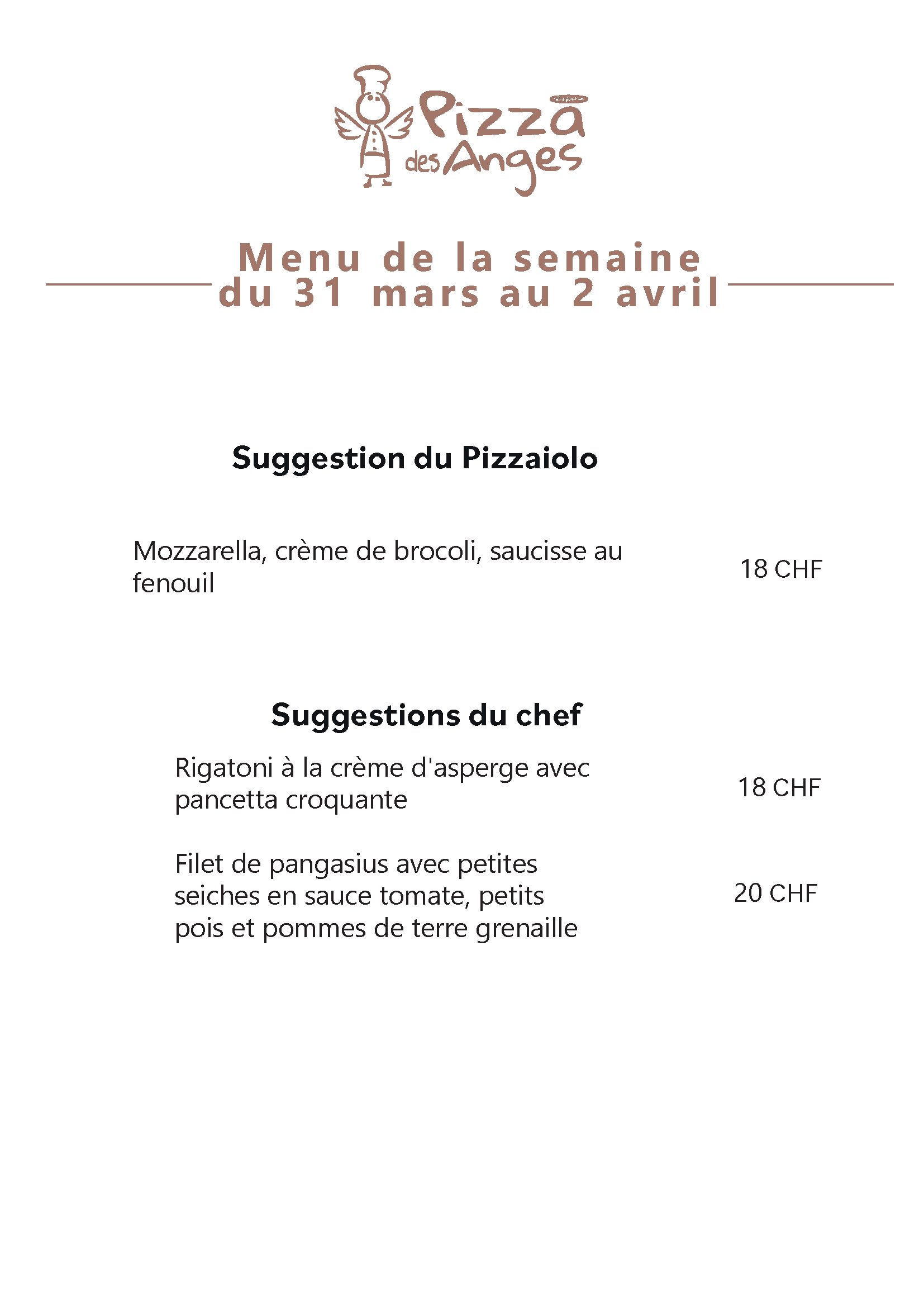 menu DE LA SEMAINE à echallens du 31 mars au 2 avril 2026