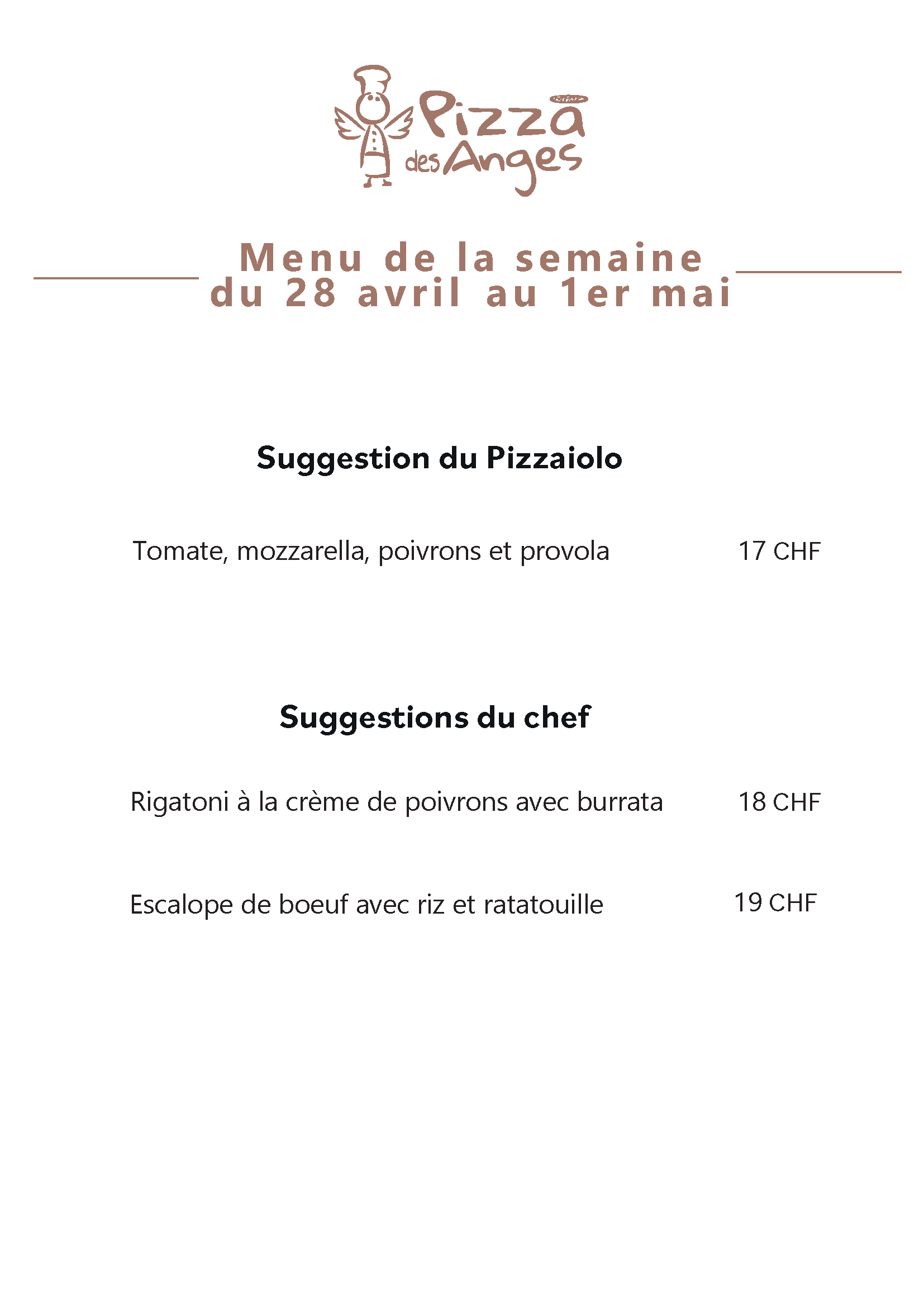 menu DE LA SEMAINE à echallens du 21 au 24 avril 2026